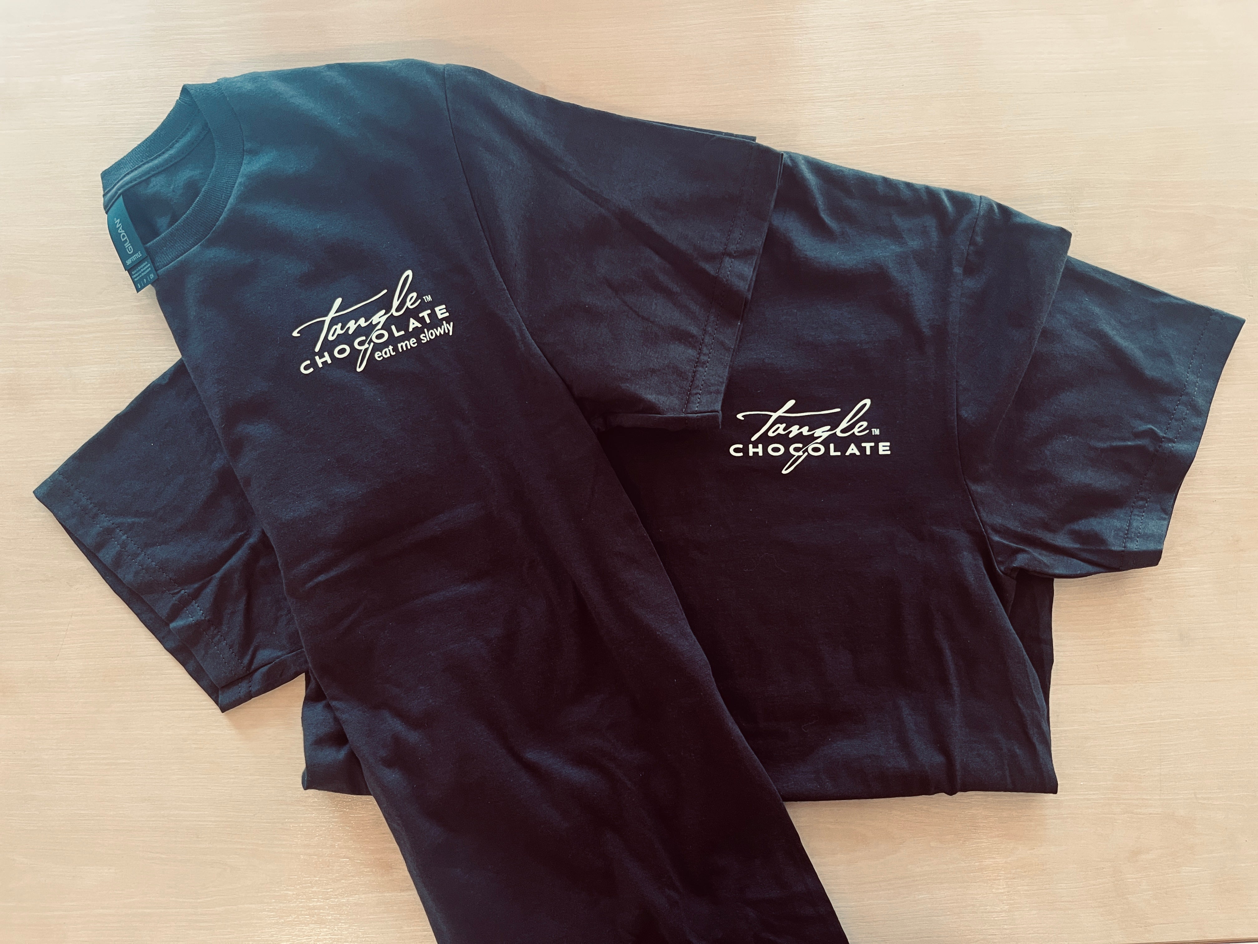 Super-soft cotton blend traditional short sleeved T shirt for all bodies! Available with just our logo or with the logo and li'l tag line. You'll be able to ask us to mail it to you if you want to buy it through our website, or you can come into Tangle and pick one up in sizes S-XL.